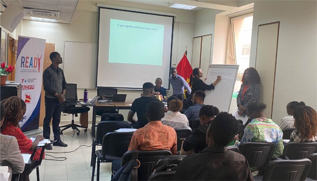 [From left to right: Angola ACADEJ leads the strategy development and Zambia ZNYP+ leads the development of their advocacy strategy]